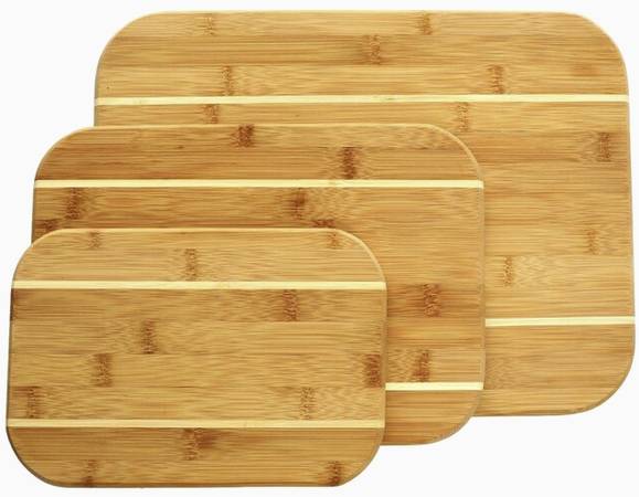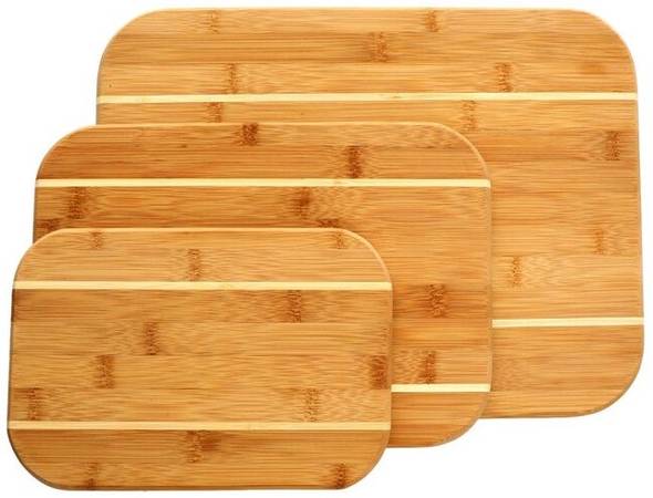 The Dewport 3-Piece Bamboo Cutting Board Set features three lightweight bamboo boards for all your cutting needs . The cutting boards come in 3 different sizes for a variety of food preparation, providing flexibility in the kitchen in one complete set. This set is great for using in the kitchen and protecting your tables and counter tops. Bamboo is dense enough to resist knife scarring and water penetration, eliminating the risk of bacteria forming in your cutting board, warping or cracking. This set is a beautiful addition to any kitchen.