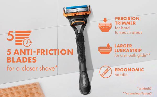 CLOSER, LONG-LASTING SHAVE: This razor for men features 5 anti-friction blades. vs. Mach3