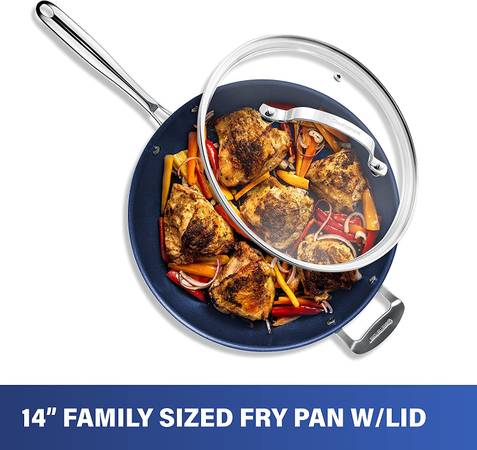 Granitestone Blue Nonstick 14” Frying Pan with Lid with Ultra Durable Mineral and Diamond Triple Coated Surface, Family Sized Open Skillet, Oven and Dishwasher Safe, 100% PFOA Free