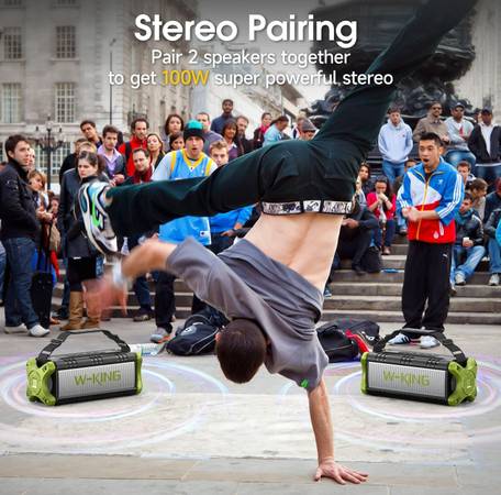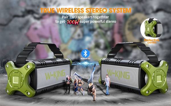 100W Powerful Beast Sound - Easily pair two portable speakers Bluetooth wireless loud, upgrading 100W stereo surround sound immediately. The Outdoor Bluetooth speakers wireless bring vivid sound to life for a fantastically dynamic Audio experience. When you listen to music, watch movies, or play games, the two portable Bluetooth speakers creating two-channel sound immediately bring you extraordinary clarity and detail. Take the loud Bluetooth speaker for movie, Christmas party, gym, camping, BBQ, travel essentials, pool party!