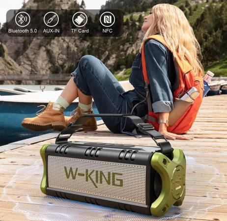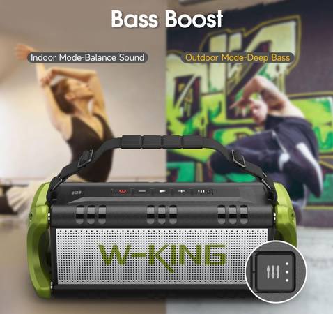 W-KING D8 Portable Bluetooth Wireless Speaker, Loud 90W Peak / 50W RMS, IPX6 Waterproof Outdoor Large Bluetooth Speaker, Subwoofer/Bass Boost/DSP/40H Playtime/Stereo Pairing/Power Bank/TF, Green