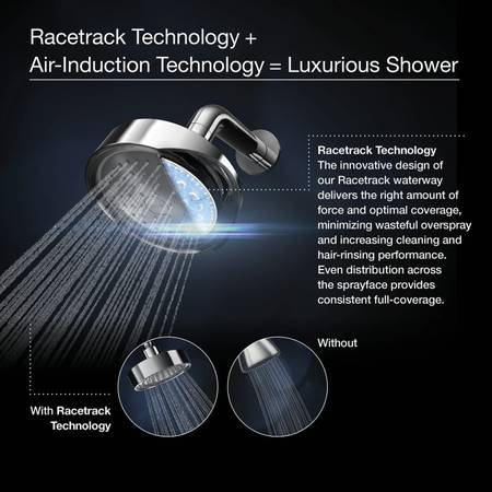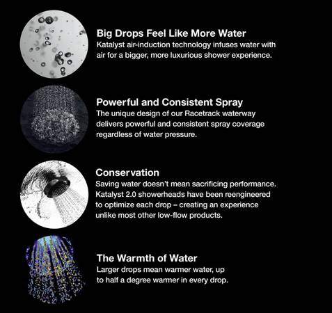 Katalyst air-induction technology maximizes the air/water mix for a powerful, even flow