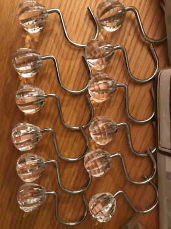 *12 used metal shower curtain hooks with “crystal” balls.