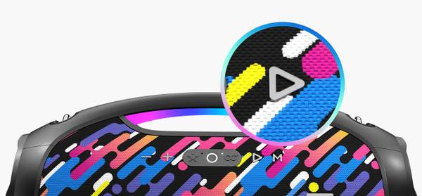 BUILT-IN RECHARGEABLE BATTERY + POWER BANK: Equipped with a 13,200mAh battery, the partySPKR boasts up to 12 hours of playtime and charges other devices in a pinch via the built-in USB type A port.