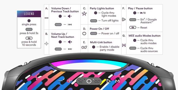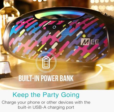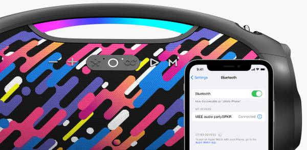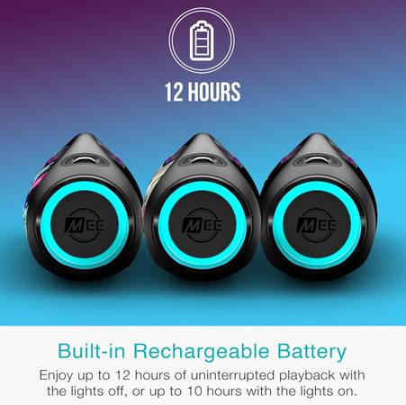 Bring your party to life! The MEE audio partySPKR features 8 different LED light modes, MEE signature sound with 3 unique audio modes, and Party Mode, which lets you connect up to 1000 partySPKRs together to play in sync.