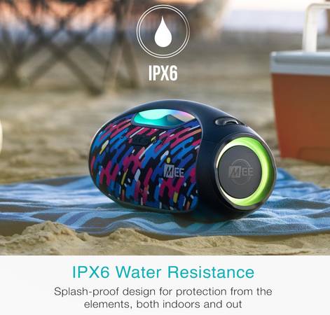 MEE audio PartySPKR XL 60W RMS / 120W Pick Bluetooth Wireless Speaker, Powerful Stereo Sound, 2 Subwoofers, Dynamic LED Lighting, Party Mode for Connecting 100+, Portable Speaker for Indoor & Outdoor Use, Colorful