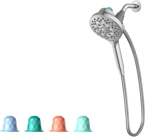 PATENTED INLY TECHNOLOGY: The Aromatherapy Handshower is equipped with patented INLY Technology allowing capsules (sold separately) to infuse essential oils directly into your shower water; Includes INLY starter pack with four spa-inspired Aromatherapy Shower Capsule fragrances