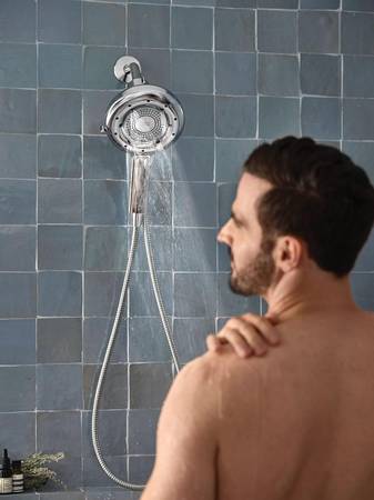The Moen Quattro Handshower features a unique design that allows you to save water without sacrificing experience by providing the perfect shower options to suit all of your needs while still using up to 50%* less water than a standard showerhead. The Handshower offers four distinct showers in a single showerhead-individually designed to relieve, soothe, clarify and cleanse unlike ever before. Now, everyone in your home can dial in the perfect shower to meet their preferences. Moen Quattro showerheads are meticulously engineered for optimal warmth, rinsing and body coverage. The showerhead also features settings engineered to provide up to 60%** more force.