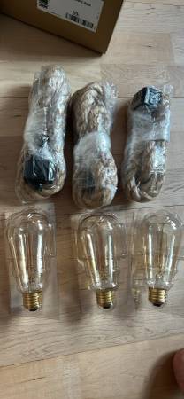 Brand new, unopened Ceiling mount industrial style rope lights with vintage style bulbs, set of 3 For pickup only, no delivery Venmo/zelle preferred Provise says/times you can pick up