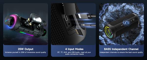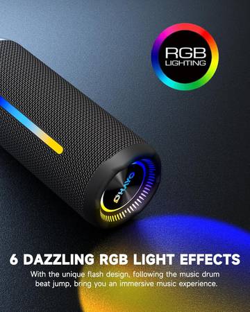 OHAYO X10 MAX Portable Bluetooth Speaker with IPX7 Waterproof, Dazzling Lights, 25W Max Loud Sound, Punch Bass, Up to 24H Playtime, Wireless Stereo Pairing, for Home/Party/Shower, Black