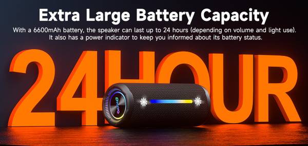 Get the most from your speaker: At 30% volume with lights off, enjoy a full day of music (24 hours!). Higher volumes and frequent use will reduce playtime.