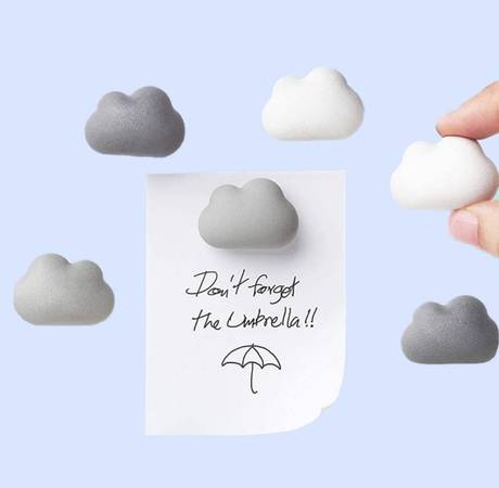 PAPER SOURCE Mini Fridge Cloud Magnets Set-6. 2 Dark Gray, 2 Light Gray, 2 White.