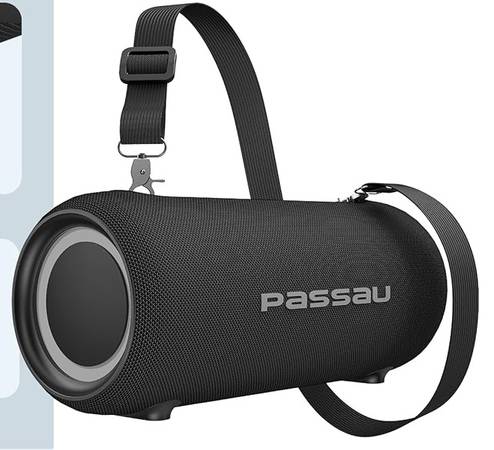 Passau S223B Portable Bluetooth Speaker, Loud 40W Peak Stereo Sound, Passive Radiators, Deep Bass, All Day Playtime, Adjustable Strap, Bluetooth 5.3, IPX5 Waterproof, RGB Lights, for Indoor Outdoor Use, Black