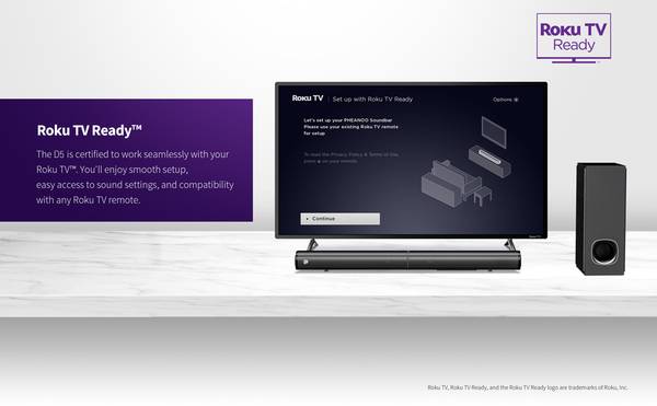 ROKU TV READY: The D5 is certified to work seamlessly with any Roku TV through the HDMI (ARC) connection. You'll enjoy smooth setup, easy access to sound settings, and compatibility with any Roku TV remote.