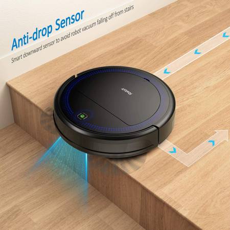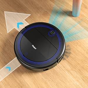 Fully Upgraded Smart Sensor: This vacuum robot is featured with upgraded infrared sensor, which can intelligently identify and evade white walls, stairs and obstacles. Once collided, the robotic vacuum front bumper can also sense smartly and leave away to avoid impact