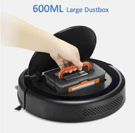 Long Run Time & Large Dust Box - Built-in 2600mAh ultra-high capacity battery offers up to 100 minutes of constant cleaning. The vacuum cleaner robot can hold more dirt because of the 600ml dust box.