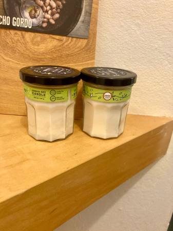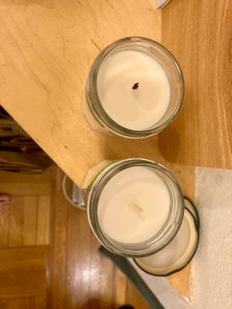 2 - 4.9oz (25hr burn time) soy candles in lidded jars. Mrs. Meyer's Clean Day brand One was burned for about an hour - the other is brand new. Lemon Verbena Scent