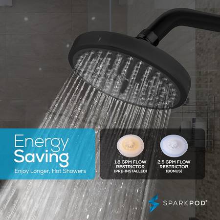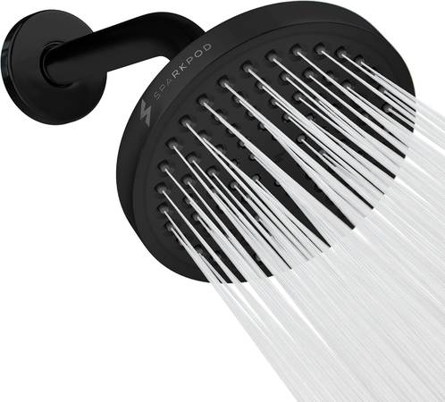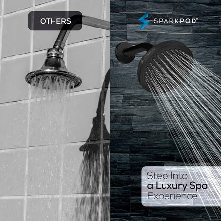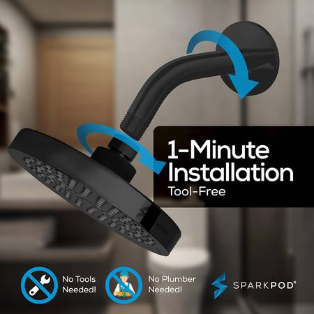 SparkPod 6" High Pressure Rain Shower Head With 6" Shower Arm - Enjoy Energy Saving Longer Hot Showers - Tool Free 1-Min Installation - Pure Luxury Adjustable Resort Shower - Engineered For Durability - Midnight Black Matte