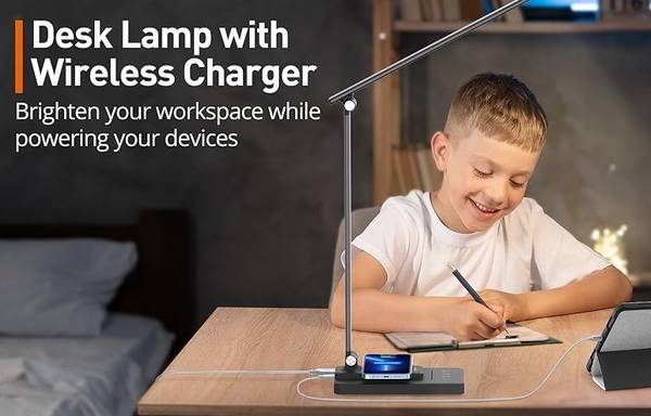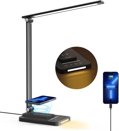 Wireless Charger & USB Charging Port: Equipped with a 5W wireless charging pad and a 5V/1A USB charging port, this desk lamp can power up your devices conveniently.