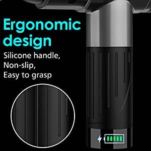 Handheld percussion massage gun, ergonomic silicone handle design can effectively prevent slipping and make it easy to grasp