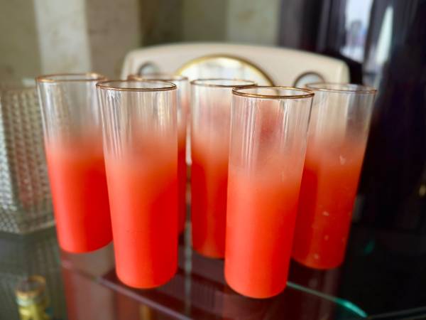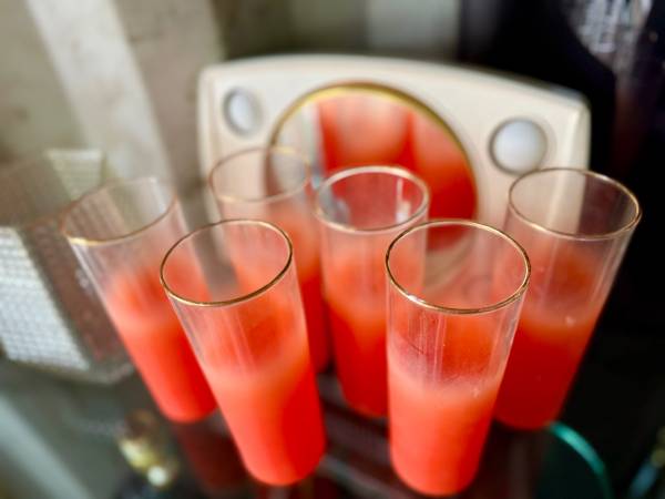 MCM Mid Century Modern Glassware Fun Faded Orange Ombré Postmodern Modern Bedroom Accent Living Room Kitchen Dining Kitchenware Hollywood Regency Art Deco Revival Lacquer Laminate