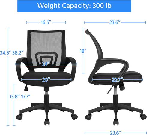 ROBUST CHAIR CONSTRUCTION: This office chair is constructed of hard-wearing nylon mesh, high-density foam, durable star base, solid rolling casters and SGS-certified gas cylinder. It has passed BIFMA X5.1 Test and is recommended for office use for customers under 300lb.