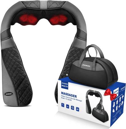 ZUUKOO HEALTH Shiatsu Massager for Neck and Back with Heat - 3D Deep Tissue Kneading Massage Pillow | Electric Full Body Massager with Carrying Bag - YC-303DR