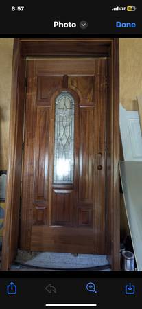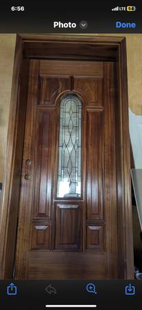 Available for sale as a authentic reproduction carved mahogany door with leaded glass thermopane panel glass Prehung - for easy installation Recently finished just needs your final touches Namely,...