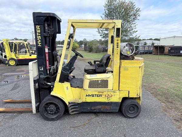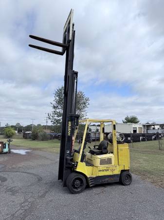 HYSTER FORKLIFT. 12,000 pound lifting capacity with an extra 1000 pounds for a lifting capacity of 13,000. Triple mast with freelift for inside, trucks and trailers, 42 inch forks, sideshift, cushion tires, GM V-6 Vortec propane engine with only 1200 hours. THIS THING IS A BEAST, ready to pick up cars and ready to go to work today. Delivery is available.. Call Mike. show contact info