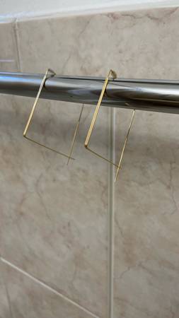 Designer jewelry, Lana Jewelry. 14k gold upside down hoops 2 1/2 in. As seen on celebs like Jada Smith and Rihanna paid $690