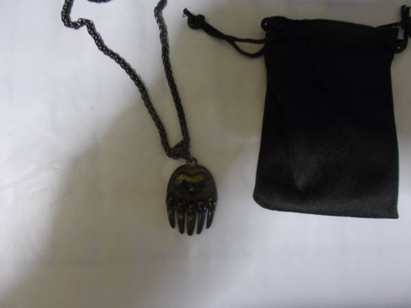 stunning adjustable bear paw necklace from faithheart- lobster claw clasp on the 22inch wheat chain- black gun plated stainless steel just $20 cash pickup - see all items selling