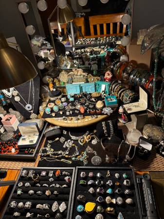 Huge Collection From Vintage Antique Sterling Navajo Pieces Costume Jewelry galore !!! Plus All Authentic Chanell ,LV ,Gucci ,Celine ,Coach, DB, Cole Hann ,Vera Bags plus wallets !!! So much more by...