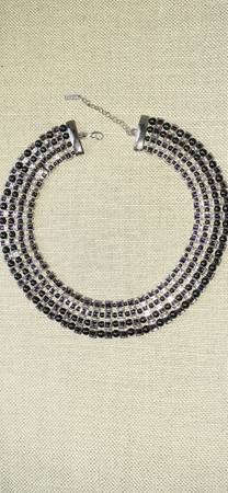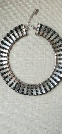 Wonderful Magenta & Charcoal Beads on Silvertone Metal, Cleopatra Style Choker! Make an Entrance this Holiday Season! Its 7.5" Length Down from Center, with a 2.5" Safety Chain Extender & Lobster Clasp. Its missing 1 bead that is really hard to find!