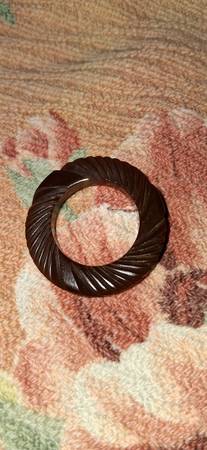 Beautiful Vintage Carved Bakelite Mahogany Brown Circle Pin. Excellent Cond. 1.5" Dia