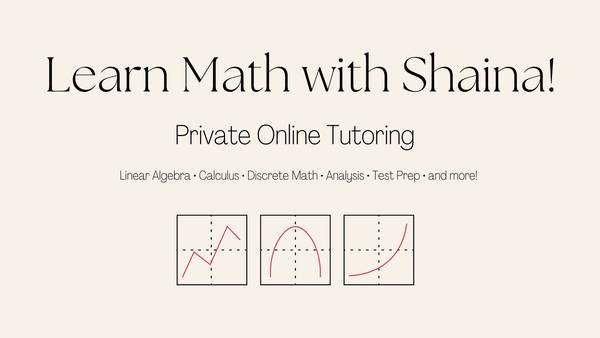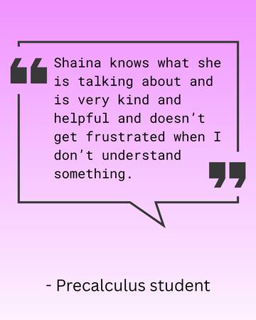 Hi! I'm Shaina! I have a PhD in math and over 15 years of experience in teaching and tutoring.