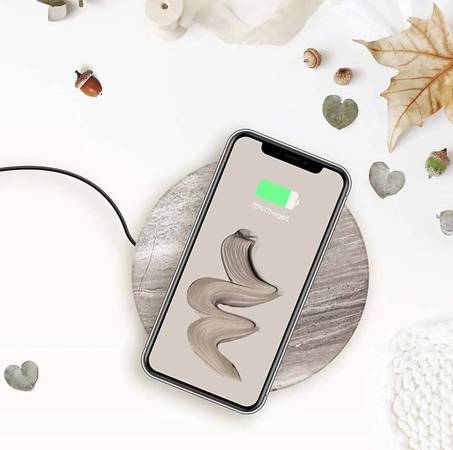 Simply set your phone or Qi-enabled device centered on the sleek stone surface to activate the fast, 10W charging capability