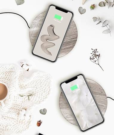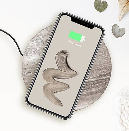 Charge your smartphone without cables by simply laying your phone on the solid stone surface