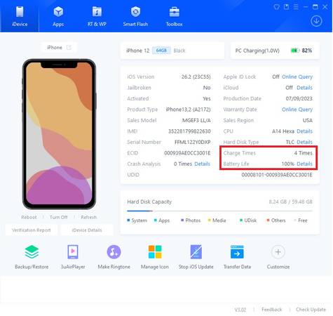 Battery health is 100% has only 4 charges.
