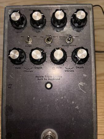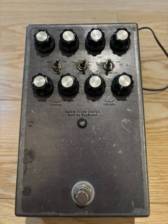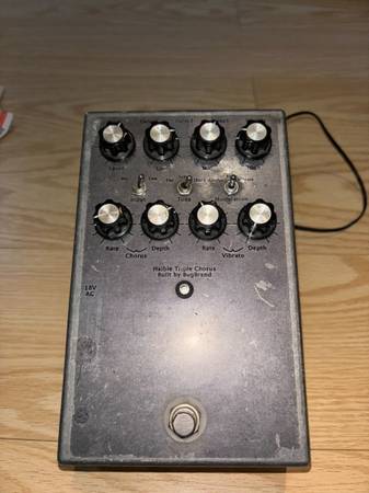 I'm selling Jurgen Haible's Triple Chorus pedal that was built by Bugbrand. It's in need of repair, so I'm selling it as-is. I don't have time to dig deeper and repair it, so I'm selling this off in hopes that someone will either be able to fix it or send it out and get it fixed.