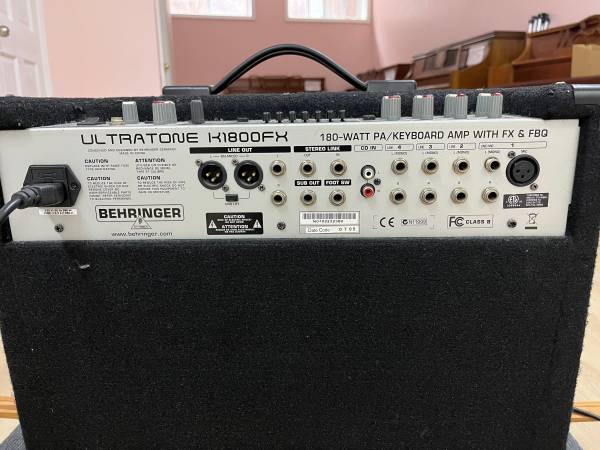 Behringer Ultratone K1800 FX 180 watt PA system/Keyboard amp. 4 line inputs, one mic input. CD/RCA in Balanced line out for PA Built in effects! A workhorse amp! $99. Cash only. Thanks!