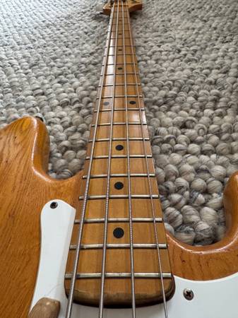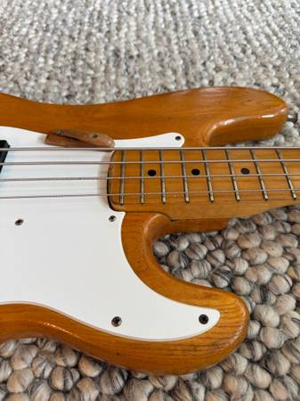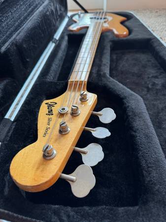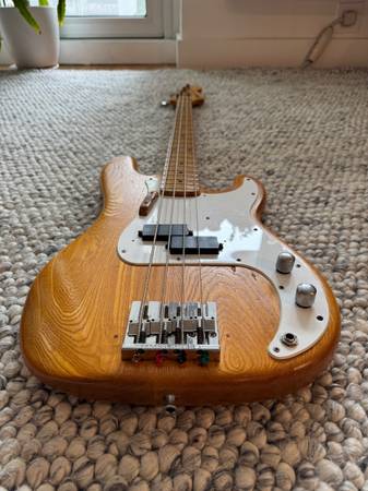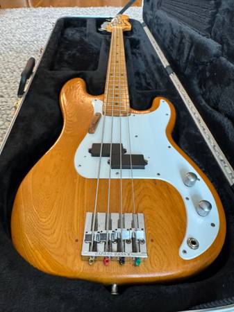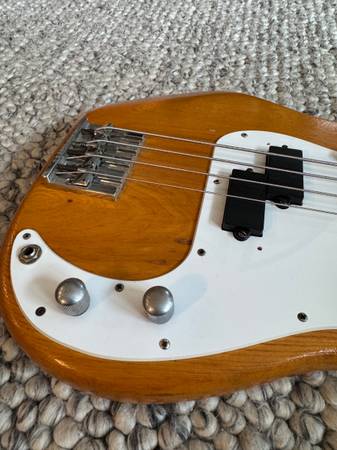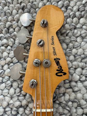 This bass is known as the "1977 lawsuit bass" 1977 was the year that Ibanez marketed a bass that looked exactly like the very popular Fender P-bass, down to the screw holes, resulting in a lawsuit and a discontinuation of the model.
