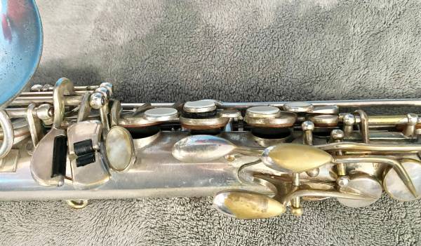 Balanced Action alto saxophone, originally silver-plated, plating is in good condition, especially on the bell and bow and the neck. There are no major repairs, no dents or bends, no heavy soldering, neck has not been damaged. The D-key key riser is optional. The horn has been overhauled about 3 years ago, the pads are still in good condition - I am primarily a tenor player, was using alto for teaching and some private sessions.It is a gorgeous instrument with a singing, silvery sound, can be quite powerful. The intonation is very good, great focus. Please send me a message if you want more photos. It comes with a new Protec Micro case.