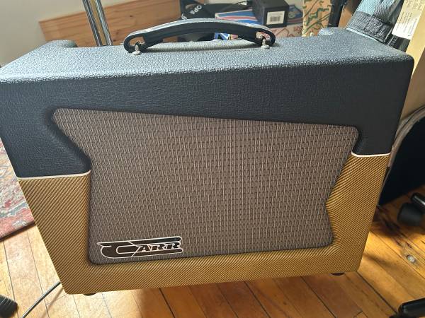 Carr Skylark. Runs from Fender tweed to Fender black, on board attenuator, from apartment to stage. 1x12 tube amp, works great! Comes with hearty cover.