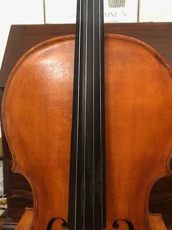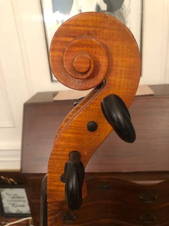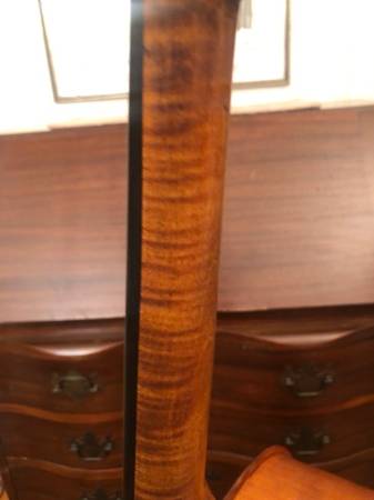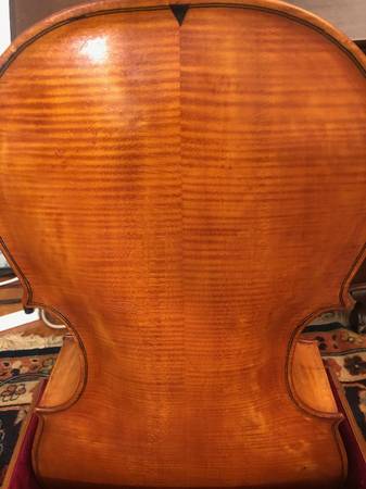 Extremely rare 7/8 cello by American luthier Clyde Corrello (born 1895). It was in storage for 25 years so it's just back from the luthier and all seams sealed and completely ready to play. It's a gorgeous work, beautiful flamed-maple back and spruce top. If you collect or have an interest in American celli, here is a great and rare piece. Or if you need a slightly smaller 7/8 cello. The back is 29" and standard 4/4 celli are 30" -- so the body is an inch shorter than 4/4. (The body of a 3/4 cello is generally 27.25" so this is quite close to a 4/4 cello) Corrello has a striking resemblance to Spencer Tracy! He made this 7/8 cello one year before his death. This reads cello #17 but I don't know if this was his 17th cello (unlikely) or more likely his 17th instrument made -- as he also made violins. And because this is the last cello he made, most likely his many years of artistry went into this piece - as luthiers know that any piece they make might be their last.