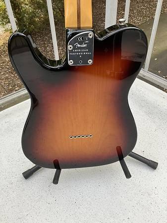 This American Professional II Telecaster is in great shape. The pick guard shows some light play wear and there are 2 tiny dings on the body that are pictured. They are only visible up close. It plays and sounds great and it comes with a nice Fender hard shell case.