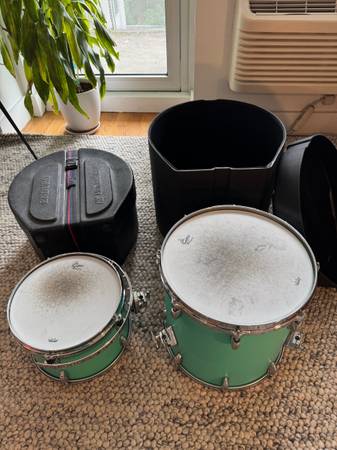 Happy to throw in hard cases for both drums for an additional $200. 14x14 SKB hard case, and 14x8 Humes and Berg case for the 12x8 (so it fits the hanging tom mount). Both cases in excellent condition.