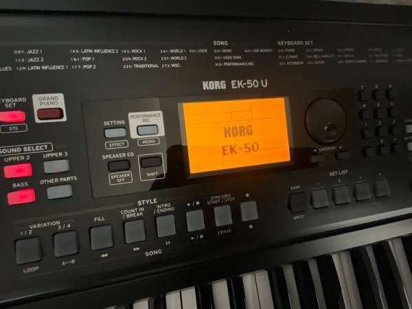 For sale Korg EK50 Unlimited workstation keyboard , excellent condition, it has external speakers and headphone jack for quiet practice, great sounds, cash and local pickup only, no trades, thanks...