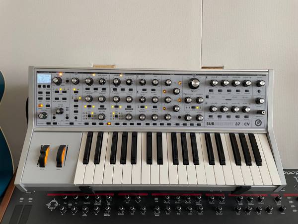 Limited edition Moog Subsequent 37 CV paraphonic analog synth. In excellent condition, purchased new and has never left the studio environment. Comes with a Moog gig bag.