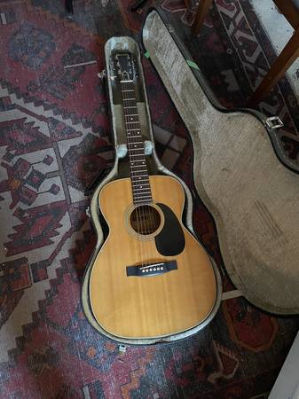 Japanese made. Excellent guitar for travelling and finger picking folk style. Plays beautifully and has wonderful aged vintage tone