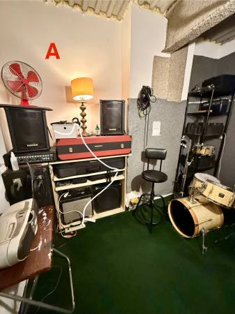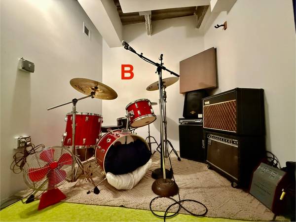 • Roland JC amps, Vox/Fender/other tube amps, full drum kits w/ cymbals/breakables